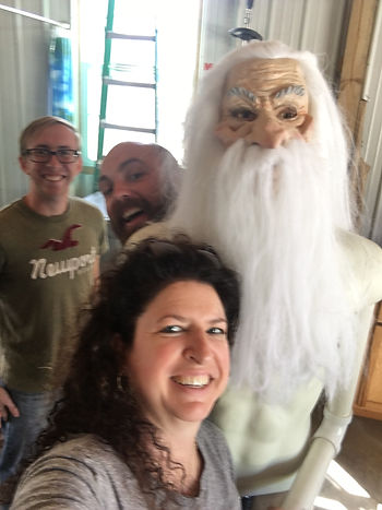 We assembled a Creative Team led by the Creative Director to tackle the mission. In our workshop, Jennifer, Dustin, and Chandler engineered, measured, cut, pieced, placed, attached, draped, glued, hammered and put together our floating scarecrow. They worked hard, but had lots of fun while they were at it!